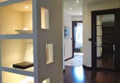 Transformation, agrandissement, décoration et rénovation totale d’une villa au Cros de Cagnes, concept et présentation d’un permis de construire obtenu pour une extension et un pool-house ouvert sur une piscine. Création d’un bassin à carpes Koi avec fontaine créée à partir d’un galet de granit géant, création et construction d’un pool house avec sauna et sous sol technique ouvert sur la piscine, création des extérieurs : plage incrustée de galets, terrasse en dalles de pierre 1mx1m et jardinières rétro éclairées, construction d’une nouvelle piscine en émaux de Briare avec margelles taillées dans les dalles pierre 1mx1m de la terrasse. Parquets en chêne et vengé massifs. Portes création en wengé avec inclusions lignes d’acier brossé, miroirs ou verre dépoli.Appareillage rétro éclairé en wengé et ardoise.Création et concept de dressings sur mesure et bureau intégré, création de bibliothèques rétro éclairées pour intégrer de façon invisible les colonnes techniques.